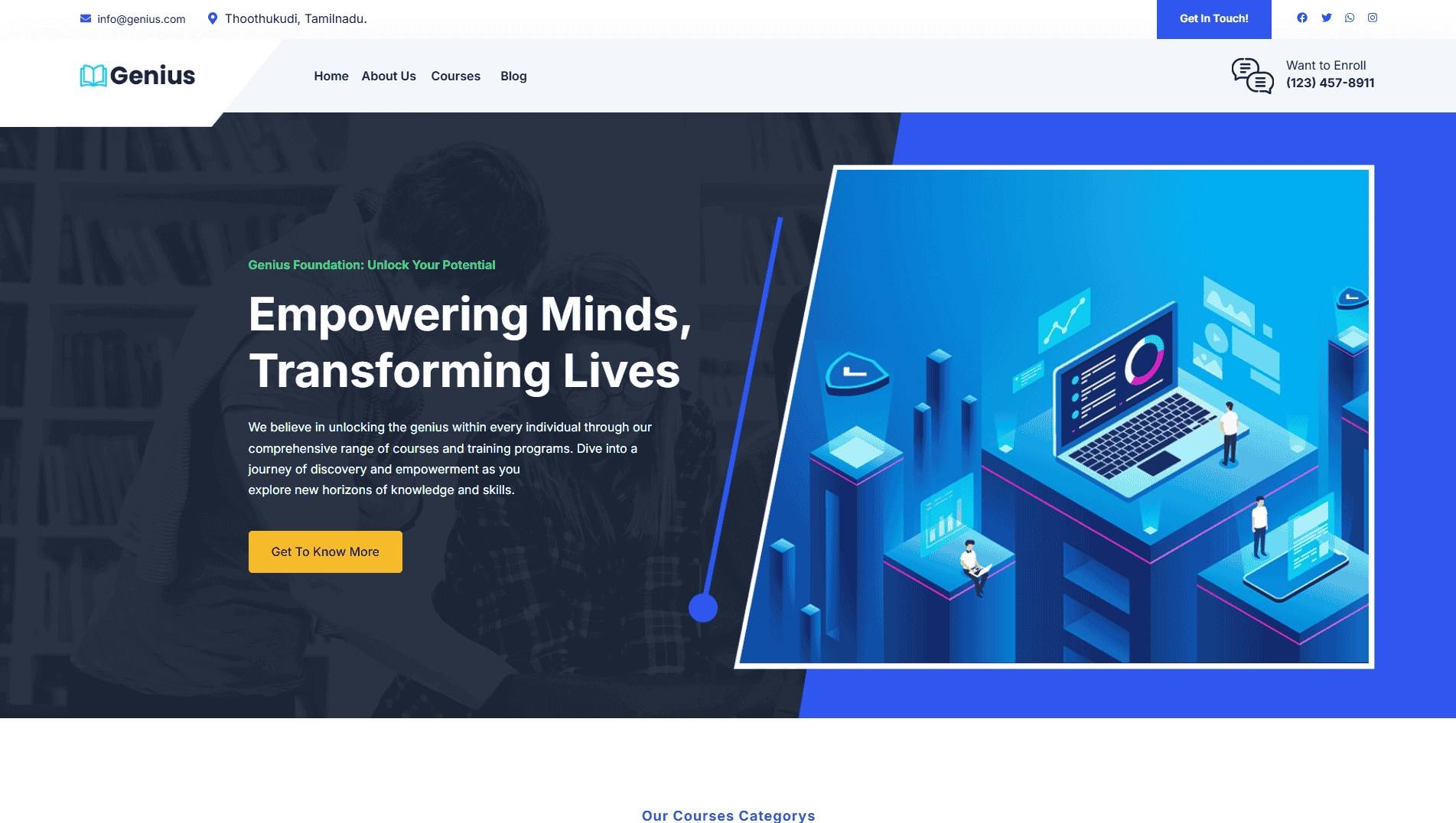 WebsiteGenius Academy empowers students and professionals through expertly designed courses, innovative teaching, and a supportive learning environment. We’re committed to unlocking each individual’s potential and guiding them toward excellence in their chosen fields.