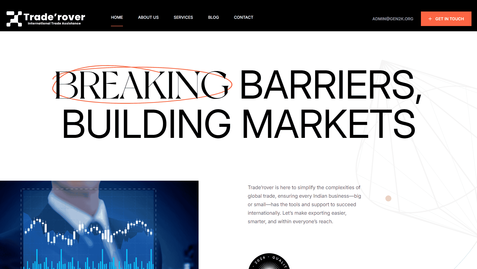 WebsiteTrade’rover, a Gen2K venture, simplifies global trade for Indian businesses. From research to logistics and compliance, we manage the complexities so you can focus on growth. Whether starting or scaling, we make exports easy, accessible, and rewarding.